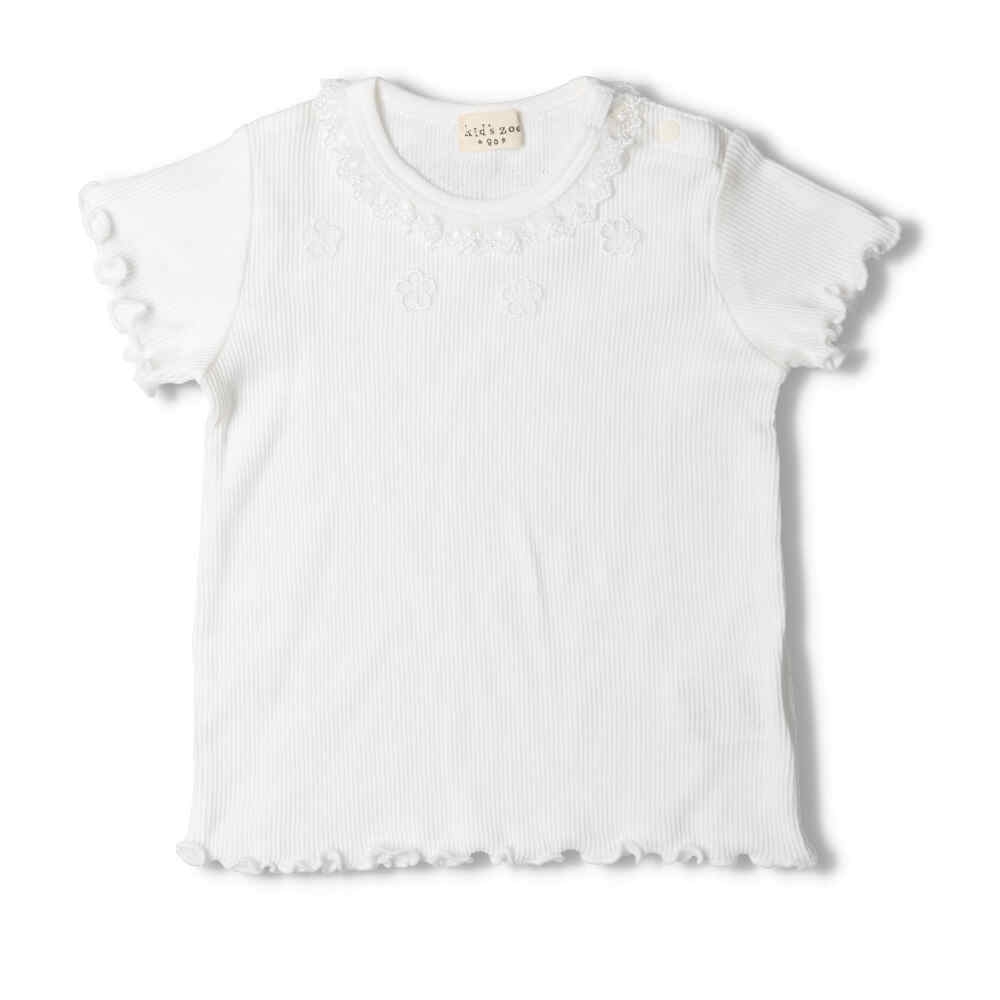 Энгэртээ цэцгэн чимэглэлтэй футболка- Цагаан